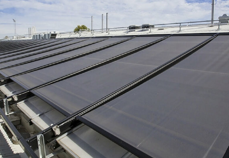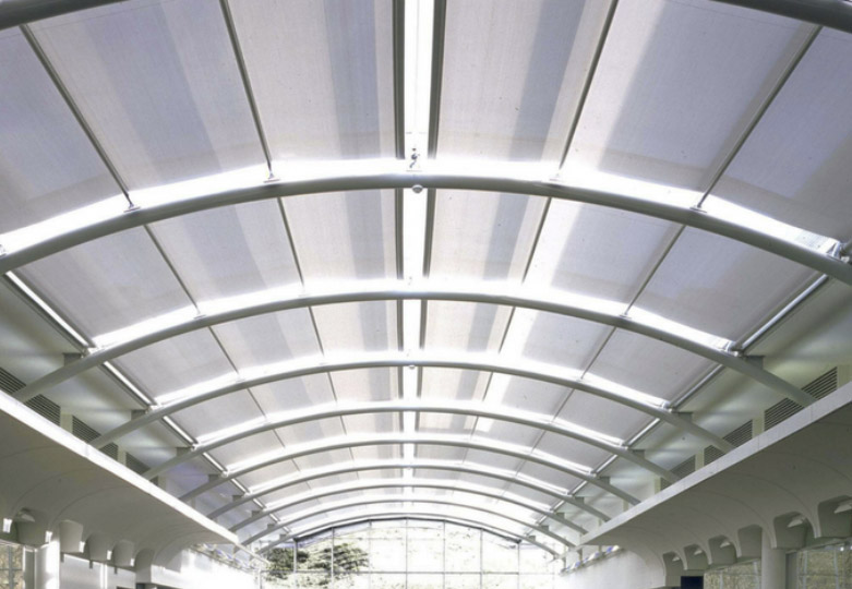 Shading Tension Systems use a unique spring mechanism that constantly holds fabric flat, deploy in any direction and intelligently adapts to the surrounding environment.